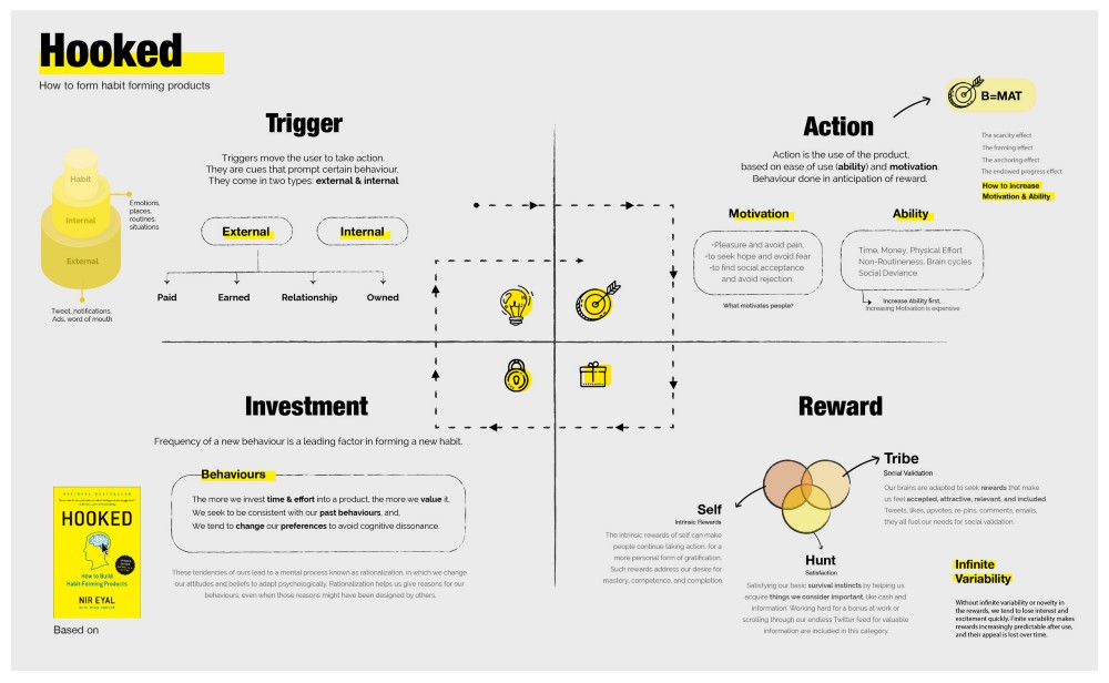 Hooked: How to make habit-forming products by Nil Eyer explains a four-step process that makes using an app become a habit. It answers why some apps are incredibly popular while others aren’t. What makes us engage with certain products out of sheer habit and is there a pattern underlying how technologies hook us?