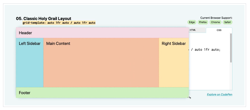 This article contains demos which examine 10 powerful lines of CSS that pull off some pretty complex layouts, including CSS Grid code to center items vertically and horizontally, Flexbox layouts for stacking columns on mobile devices (e.g., the "deconstructed pancake"), and many other example layouts with sidebars, headers, and footers.