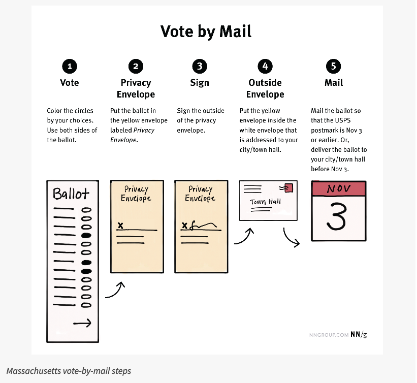 This NN/g article examines small usability issues that add up to drastic effects when looking at the vote-by-mail process.