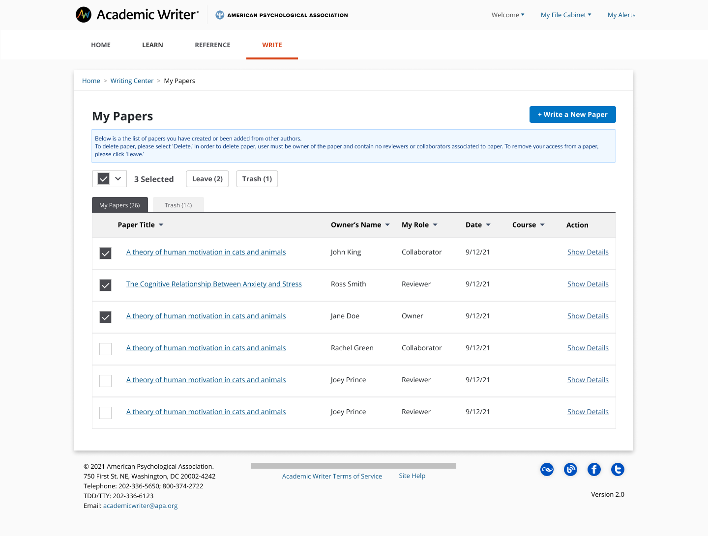 A new feature from Academic Writer is introducing a trash section where users can select papers to soft delete. The papers will move to the trash folder and will be held in the folder for 30 days before the paper is deleted from user's list.