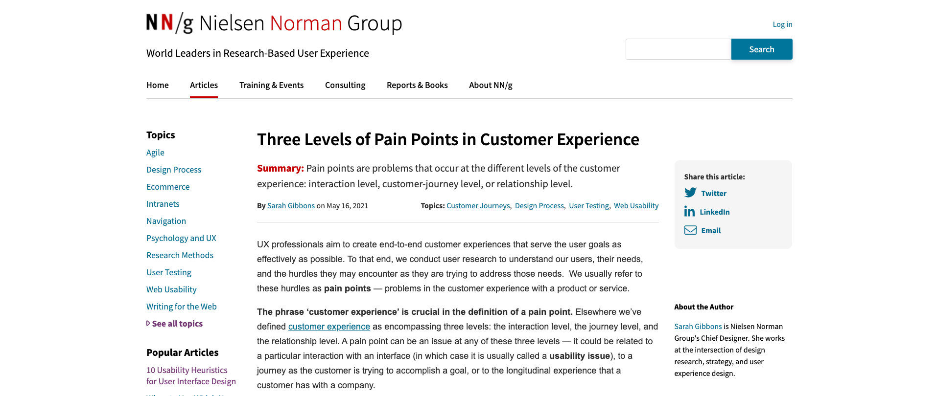 UX professionals aim to create end-to-end customer experiences that serve the user goals as effectively as possible. To that end, we conduct user research to understand our users, their needs, and the hurdles they may encounter as they are trying to address those needs. We usually refer to these hurdles as pain points — problems in the customer experience with a product or service.